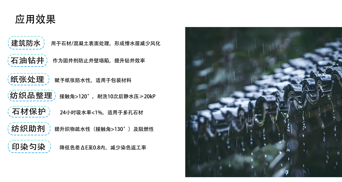 混凝土结构防水;文保修复;工业基护;包材防护;纺织功能;石材/瓷砖防护;